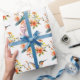 Wrap your birthday party gifts with this wrapping paper, which features watercolor hummingbirds two and flowers in a seamless pattern on a white background.