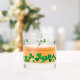 Cute custom whiskey glass featuring three hummingbirds carrying Shamrocks.