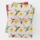 Christmas wrapping paper for hummingbird lovers featuring male and female Rufous hummingbirds, Allen's, and Ruby-throated hummingbirds with stars on a white, green, and red background.