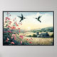 Hummingbirds and Wildflowers With Optional Frame Poster