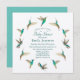 This baby shower invitation features rufous-tailed hummingbirds and fiery-throated hummingbirds. Personalise it with your baby shower details using the templates provided. The cards reverse to a pretty shade of teal. The font style, font colour, and font size can be changed by clicking on "customise further".