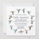 This birthday invitation features several hummingbird species native to North America such as Rufous, Ruby-throated, Xanthus and Allen's Hummingbirds. Personalise it with your birthday party details using the templates provided. The font style, font colour, and font size can be changed by clicking on "customise further".