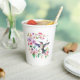 This design features watercolor hummingbirds and a tropical floral wreath with green leaves lavender purple and pink flowers.