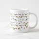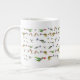Multiple images of sweet hummingbirds on a pure white background wrap this huge mug.