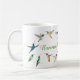 The Lone Star State has an amazing variety of hummingbirds. Throughout the state, at different times of the year the hummingbird lover can find Ruby-throated, Black-chinned, Blue-throated, Broad-tailed, Buff-bellied, Broad-billed, and White-eared varieties of the bird. One can encounter such species as the Calliope, the Lucifer, Costa's, Rivoli's, Rufous, Anna's, Allen's, the rare Berylline hummingbird, the Mexican Violetear and the Violetcrowned hummingbird, as well as the Amethyst-throated and the Green-breasted Mango hummingbird. All these species are depicted on this mug. The images are taken from original watercolors by Christiane Dobbins.