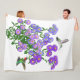 Original fine art design of male and female Ruby Throated hummingbirds on pretty purple wild flowers by artist and designer Carolyn McFann printed on a luxuriously soft fleece blanket for wild bird fans.