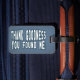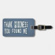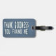 Modern typography style design with the words "Thank Goodness You Found Me!". Perfect identification tag for your travels, sports,school,gym,sports practice and other everyday events.