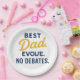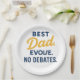 Inspire your guests with our eye-catching 'BEST DAD EVER. NO DEBATES.' paper plate. Featuring a bold, hilarious design, this disposable plate is perfect for adding a touch of humour and love to any celebration. Ideal for Father's Day parties, birthday events, family reunions, or any gathering where you want to playfully declare who the best dad truly is. Made from high-quality material, it combines fun with functionality, ensuring an enjoyable experience for everyone. A must-have for dads who love a good laugh and appreciate their well-deserved title!