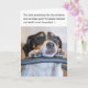 A humourous birthday card featuring a colour photographic image of a dog resting his chin on the arm of an office chair in a 'houghtful pose. The text on the front of the card reads: "I've been pondering life, the universe and all that, and I've totally worked out what's most important ..." Inside Text reads: "... you and cookies, although not necessarily in that order!