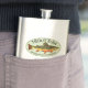 The product is a good size and came exactly as it was pictured. The lid is not attached to the flask, which could be dangerous on drunken nights... The print came out surprisingly well and looks very sharp. Would definitely recommend.