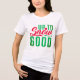 This playful Christmas t-shirt showcases a fun and festive design with the phrase Up to Snow Good, perfect for holiday gatherings and family celebrations during the winter season.