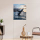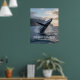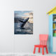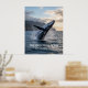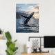 A powerful humpback whale bursts through the ocean surface at sunset, frozen in a moment of raw energy and grace. The dramatic coastline and soft golden sky create a striking contrast against the deep blue water, making this piece both calming and bold.