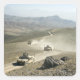 Humvees traverse rugged mountain roads square sticker