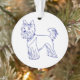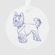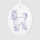 Klassisches Design in Blau-Weiß. Blaue Linienzeichnung der Hunderasse Yorkshire-Terrier auf weißem Untergrund.