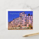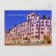 A night photograph of the Green Citadel, Grüne Zitadelle in Magdeburg, Saxony Anhalt, Germany is featured on this postcard.