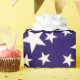 Scattered stars both large and small, white with a thin edge of gold, on a plain background. A good choice for almost any occasion.