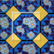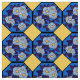 New take on a vintage Hungarian Art Deco Design features royal blue hexagons adorn with hand-painted flowers all set againt a daffodil yellow background. Perfect for kitchen curtains & table linens, pillow cases, or a cheery summer caftan! Use your imaginations and upload a selfie with your finished project!