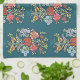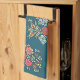 Kitchen Towel with the design of Hungarian flowers in blue background - Kalocsai style tempera painting by a local folk artist featuring painted flowers like tulips, roses, forget-me-nots, acacia flowers. Design by Alma Wad. Printed item - great for a heritage style kitchen /restaurant.