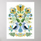Hungarian Folk Art Birds in Blue and Gold Poster