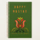 Hungarian folk flower design in terracotta and olive green against green background. Make it your own with a title and name, if desired. Completely customisable text. Large choice of fonts available and infinite colours.