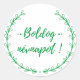 Boldog nevnapot ! - Hungarian Name Day wishes in elegant script fonts . Fun typography design in green and white . You can edit both colours now . Printed round sticker with graphic leaves by Alma Wad .