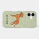 Destei's original cartoon illustration of a cute Hungarian Vizsla / Hungarian Pointer breed dog. The background colour is green with a decorative texture. The background colour can be changed to any other colour and the texture can be removed, if so wished. There is also a personalizable text area for a name or other custom text.