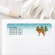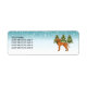 Destei's original cartoon illustration of a cute Hungarian Vizsla breed dog. The dog is placed in a winter scene with three green fir trees and falling snow. The background is a blue to white gradient giving the design that cold winter day look. Next to the dog there is a personalizable text area.