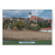 Standing in a field in the Hungarian countryside, looking at the steeples and buildings of a town. Clouds are in the blue sky, but the weather remains sunny and warm.