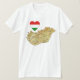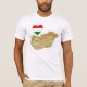 A heart shaped Hungarian flag is placed next to a relief map of Hungary on this distinctively patriotic t-shirt.
