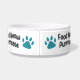 I absolutely love this product! I was a little concerned prior to buying it, but I was blown away by the quality of the item. The bowl is sturdy and arrived clean without any damage. The printing was crisp and clean and looks Better than I hoped! My dogs immediately knew these were for them and get very excited to pose with their new bowls! Definitely recommend and will purchase more in the future! The printing is crisp and well done. It looks absolutely beautiful on the bowl, and I can tell that it’s going to hold up well over time.