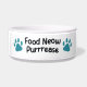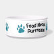 Food Neow Purrrease, teal cat pawprints food now please design.