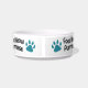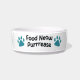 Food Neow Purrrease, teal cat pawprints food now please design.