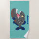 Hungry funny piranha cartoon illustration beach towel