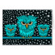 Cute, angry and hungry turquoise owls greeting cards, postage stamps and gifts for owl lovers, ornithologists, bird lovers and birders. Mama owl with two baby owls with starry night background. Unique, colourful and cool owl gifts for birthdays, Christmas or any occasion. This owl design is available in thre different colours!