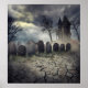 Hunted house on graveyard. Halloween design.