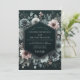 Embrace a mood of dramatic romance with this elegant artistic composition. Painterly botanicals in dusty blush, mauve, and cream emerge from a deep, shadowy hunter green background. This beautiful floral arrangement features lush roses and delicate anemones, creating an atmosphere of twilight sophistication for your special union.
