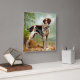 Hunter dog with bird in mouth. Colourful vintage drawing. Retriever with colourful hunter fur