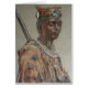 Colour pencil drawing of a hunter with his gunpowder gun and good-luck charms. By Melissa Enderle