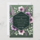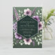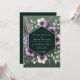 This elegant design features a lush arrangement of watercolor florals. Soft lavender and mauve anemones are delicately layered with sprigs of purple blossoms and verdant green leaves. The entire botanical display is set against a deep hunter green background, creating a romantic and moody atmosphere for your nuptials.