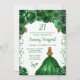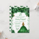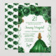 This elegant and glamourous birthday invitation features a beautiful princess with blonde hair and fair skin in a hunters green gown. The text combines handwritten script and modern sans serif fonts for a classy and sophisticated look. The floral arrangements, butterfly and confetti create the perfect blend of rustic and chic.