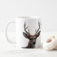 This mug has a picture of a deer I took. One side is of his face while the other side shows his face with a little more of his body. I have writing on the mug because I made this for my brother. The words are easily to take off. Mug is white and the deer is white with brown tones.