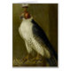 Oil painting of a falcon with hood and tethered to a perch by a 17th century unknown Italian artist.