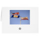 Heavy surf pounds the shore in Huntington Beach. Inside the card is a view of the pier. On the back are the U.S., California and Huntington Beach flags flapping in the wind. You can add your own text to all four sides of the card.