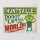 A funny Huntsville Alabama vintage travel postcard featuring a friendly robot with fun retro style text that says, "Huntsville, Robot Capital of the world!"