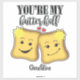 Show your love with this funny food pun sticker of two slices of toast and the quote, you're my butter half!