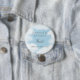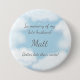 This morbidly funny button has a scene of heavenly blue sky, dreamy clouds, sparking stars and the words "In Memory of my late husband [insert name] Better late than never!" Perfect for those who waited a long time for a partner.