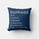 Adorable decorative throw pillow just for your loving husband featuring a white typography design and your colour of background and the colour of the back side of pillow! To change the background colour, use the customise it button. Text can also be added to front or back side. Pillow reads: Husband, noun 1. lover 2. friend 3. provider 4. protector 5. my everything