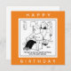 Pub lover birthday card. Wife tells her friend that her lazy sleeping husband only finds his "get up and go" when the pubs open. Funny cartoon by UK cartoonist Nigel Sutherland. Pub goer joke.