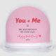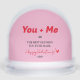 This charming snow globe design features a soft pink background with bold red lettering for "You + Me," immediately capturing attention. The equation is completed with the phrase, "THE BEST DECISION YOU EVER MADE," in a classic, elegant serif font, adding sophistication. Below, a romantic script font in red can read any custom message you wish, such as "Happy Valentine's!", "Happy Anniversary!", or a heartfelt personal dedication, followed by a customisable name, making it uniquely personal. A small red heart accent adds an extra touch of love.