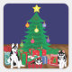 Huskies Playing Underneath the Christmas Tree Card Square Sticker